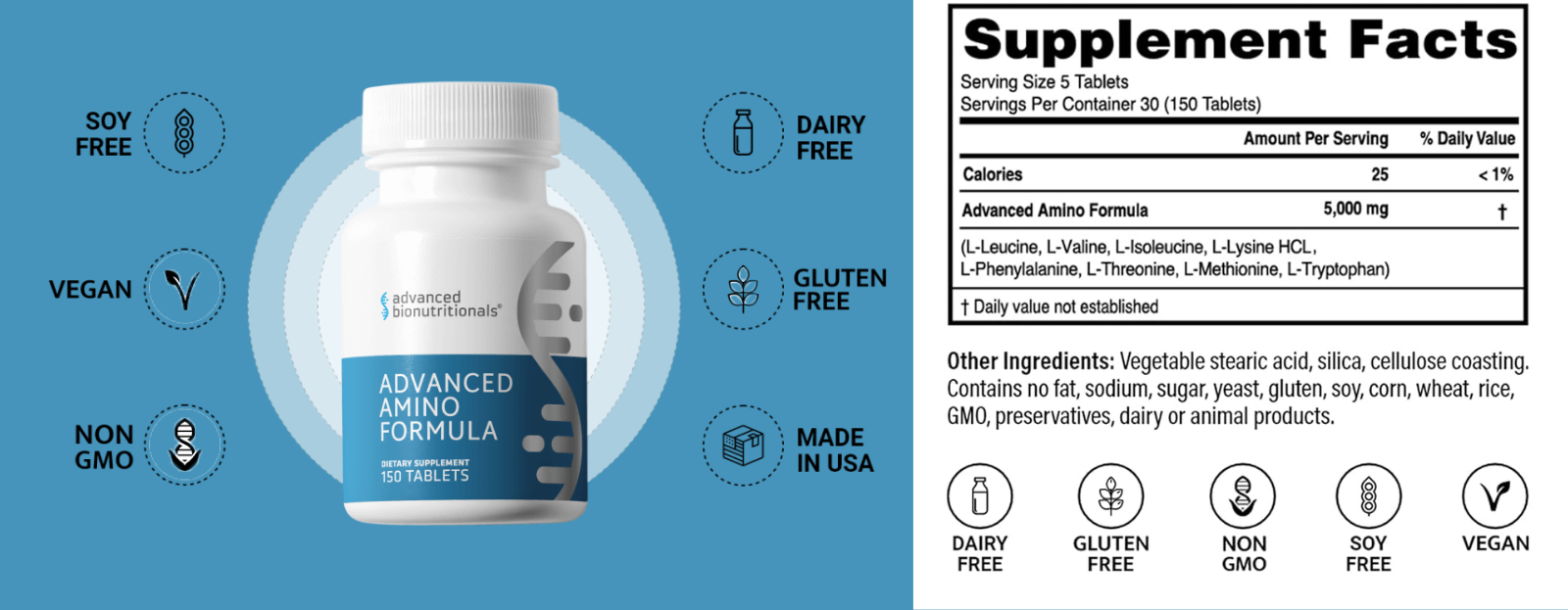 Advanced Amino Formula works by targeting one of the core needs for strength, recovery, and vitality: maintaining an optimal balance of essential amino acids in the body. Amino acids are the building blocks of protein, which are crucial for muscle repair, tissue regeneration, and overall energy production.